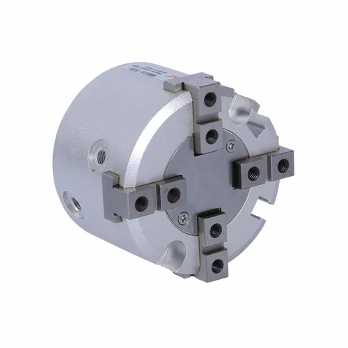 The 4-Finger Pneumatic Gripper is built for complex operations requiring high stability and superior holding force. It offers maximum contact and control for larger or irregular parts, ensuring accuracy and strength in precision handling or assembly tasks. This model also functions effectively as a Pneumatic Chuck providing firm grip and rotational control in automated production lines.